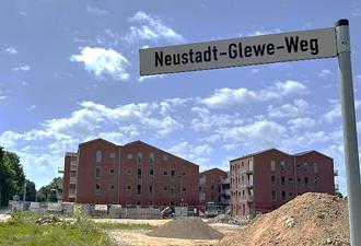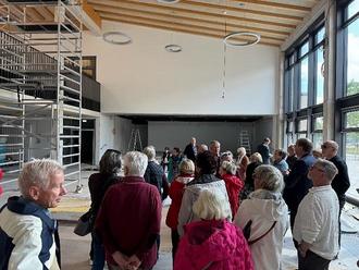 Mit Zwischenhalt am Neustadt-Glewe-Weg ging es zum Neubau der Grundschule für 600 Kinder mit einem Investvolumen von über 30 Mio. €. Hier ein Blick in die Aula.