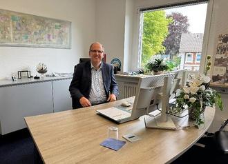 Bürgermeister Jürgen Hettwer ließ es sich nicht nehmen, die Teilnehmer vor dem Rathaus zu begrüßen. Zum Empfang gab es Kaffee und Franzbrötchen im Foyer. Danach leitete er uns durchs Rathaus u.a. auch ins Amtszimmer des Bürgermeisters.