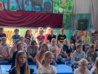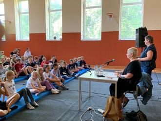 Auch in diesem Jahr nimmt die Stadtbibliothek Neustadt- Glewe vom 03. Juli bis 02. September wieder an der „FerienLeseLust MV – Lesen tut gut“ teil. Da unsere Schule eng mit der Neustädter Bibliothek zusammenarbeitet und viele Klassen diese im Laufe des Schuljahres besuchen, ein tolles Ferienprojekt für unsere Kinder. Am Freitag, dem 07.07.2023 hatte die Bibliothekarin Frau Balzer die Viertklässler zu einer Dichterlesung in die Turnhalle geladen. Mit dieser Aktion machte sie alle auf die „FerienLeseLust MV – Lesen tut gut“ neugierig.