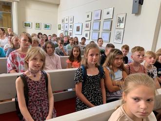 Sie besichtigten das Neustädter Schloss, von allen Seiten, gingen durch die Altstadt zum Rathaus, danach besuchten sie die Stadtkirche. Dort trafen sie eine Klasse der Regionalen Schule die auf einer Stadtrallye war. Der Organist erklärte den Großen gerade die Orgel. Die Viertklässler fanden das auch sehr interessant, setzten sich auf die Kirchenbänke und hörten zu. Zum Erstaunen der Kinder gab der Organist, nachdem er den Realschülern alles erklärt hatte, extra für sie ein ganz kleines Orgelkonzert. Es klang sehr schön, die Kinder hörten mit viel Freude zu und ließen die besondere Stimmung auf sich wirken.