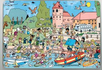 Auch für die Lewitz, den See, den Flugplatz und historische Gebäude wie das Schloss haben wir kleine Wimmeleien eingebaut. Unsere spannende Tierwelt? Aber ja, sie wimmelt im kunterbunten Geschehen vor der Burg.