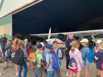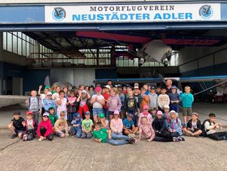… das ist ein Traum vieler. Diesem Traum recht nahe kamen unsere zweiten Klassen während eines Projekttages im Juni. Sie wanderten zum Neustädter Flugplatz um dort den Motorflugverein „Neustädter Adler“ zu besuchen. Ermöglicht hatten diesen Besuch Herr Ronald Warncke und seine freundlichen Kollegen. Die Kinder waren sehr aufgeregt und freuten sich auf einen erlebnisreichen Tag. Sofort nach der Begrüßung ging es los. Wir durften in die Hangars und bestaunten die darinstehenden Motorflugzeuge. Alle neugierigen Fragen wurden von den Piloten geduldig beantwortet. Es war sehr interessant und lehrreich. Der Höhepunkt aber war, wer wollte konnte einige Flugzeuge selbst ausprobieren. Natürlich nicht abheben und fliegen, aber im Cockpit sitzen, die Instrumente bedienen und sich vorstellen gerade über den Wolken zu schweben. Die Fantasie der Kinder kennt keine Grenzen und so konnte sich jeder in verschiedensten Fliegern wie ein richtiger Pilot fühlen.