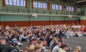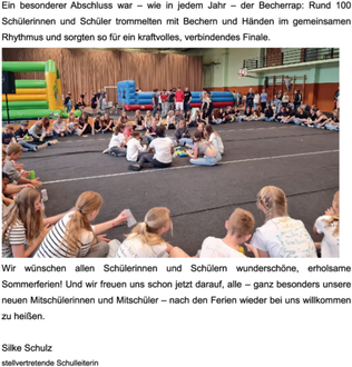 Ein besonderer Abschluss war – wie in jedem Jahr – der Becherrap: Rund 100 Schülerinnen und Schüler trommelten mit Bechern und Händen im gemeinsamen Rhythmus und sorgten so für ein kraftvolles, verbindendes Finale.