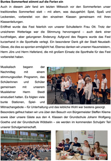 Auch in diesem Jahr fand am letzten Mittwoch vor den Sommerferien unser traditionelles Sommerfest statt – mit allem, was dazugehört: Spiel, Spaß und Leckereien, vorbereitet von den einzelnen Klassen gemeinsam mit ihren Klassenleitungen.