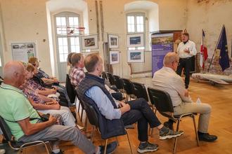Einen weiteren Akzent setzte Axel Eckhardt, Vorsitzender des Luftsportvereins Neustadt-Gleve e.V. Er schilderte eindrucksvoll die Vielfalt der Vereinsleben am Regionalflughafen, berichtete von den vielen dort aktiven Luftsportgruppen und den Gästen, die den Platz jedes Jahr besuchen. Damit schlug er die Brücke von den Bildern im Ausstellungsraum zum lebendigen Alltag vor Ort.