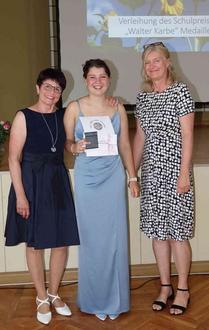 An der Integrierten Gesamtschule „Walter Karbe“ ist es seit vielen Jahren Tradition, besondere Leistungen mit dem Walter-Karbe-Schulpreis zu würdigen. In diesem Schuljahr wurde Thalia Abs aus der Klasse 10a mit der Walter-Karbe-Medaille ausgezeichnet.