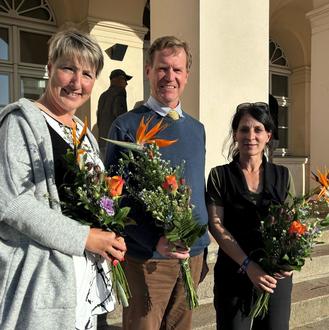 Links ist die zweite stellvertretende Stadtpräsidentin Daniela Preuß, daneben der wiedergewählte Stadtpräsident Ernst-August von der Wense und die erste Stellvertreterin Stella Schüssler zu sehen.