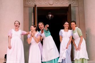 Unbedingt dorthin! Mit Witz, Musikalität und ungebremster Spielfreude machen die fünf Darstellerinnen aus der aktuellen open-air-Inszenierung auf dem Theatervorplatz ein außergewöhnliches Erlebnis.