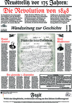 Der "Verein für Kultur, Umwelt und Kommunikation e.V." (VfKK e.V.) hat in Kooperation mit dem "Neustrelitzer Kulturrat e. V." und dem Kulturquartier in Neustrelitz eine Veranstaltungsreihe zur 1848er Revolution entwickelt. Im Großherzogtum Mecklenburg-Strelitz waren - wie in vielen anderen Ländern in ganz Deutschland und Europa - revolutionäre Aktivitäten zu registrieren. Auch in Neustrelitz waren viele Persönlichkeiten, u. a. Daniel Sanders, Adolf Glaßbrenner und Karl Petermann sehr aktiv. Es wurde als wichtigstes Mittel für die Verbreitung des demokratischen Gedankenguts die Zeitung "Blätter für freies Volksthum" herausgebracht.