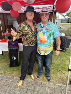 Arm in Arm: Star-Designer „Ralf Laberfeld“ (li.) mit Musiker Frank Lange.