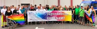 Ein gemeinsames Gruppenbild der Akteure ist inzwischen ein schönes Abschlussritual geworden. Das Organisationsteam ist sich einig: Eine 4. Jugendmesse Ehrenamt sollte unbedingt folgen. „Ein großes Dankeschön gilt allen Mitwirkenden. Besonders hervorzuheben ist die liebevolle und zauberhafte Verpflegung durch die Schulküche der Nehru-Schule. Das Team um Frau Schulz und die Schülerinnen der 10.Klasse haben ein abwechslungsreiches Büfett gezaubert, das von den Ehrenamtlichen sehr anerkennend und wertschätzend genossen wurde“, lautet das Extra-Lob für das Engagement der Schule. — (PM/SE)