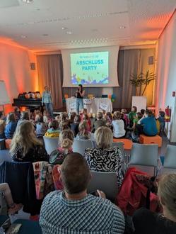 Der Abschluss der Aktion wurde mit einer exklusiven VIP-Party der teilnehmenden Kinder gefeiert. Dabei wurden alle Kinder mit Urkunden, kleinen Preisen und viel Applaus geehrt. Nach der Urkundenübergabe erlebten die Kinder eine tolle Comic-Lese-und-Zeichen-Show mit dem bekannten Comic-Zeichner Mawil und ließen abschließend den Nachmittag bei Kindercocktails und Spielen im Garten des Kulturquartiers ausklingen.