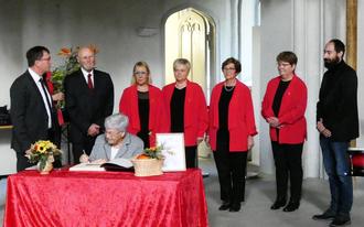 Der Frauenchor Freundschaft ist 75 Jahre alt. Die Sängerinnen feierten das Chorjubiläum am 14. Oktober mit einen Festkonzert in der Schlosskirche. Mit den zahlreichen Gästen kam auch Bürgermeister Andreas Grund zum gratulieren. Der Chorvorstand und der langjährige Chorleiter Hans-Joachim Fiedler trugen sich in das Goldene Buch der Stadt ein.