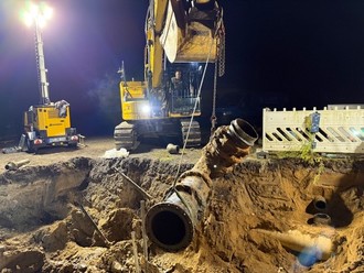 Die Arbeiten stellten auch für den Wasserversorger eine Herausforderung dar, denn zunächst mussten die Voraussetzungen für die Verlegung der neuen Leitungen geschaffen werden. Dafür musste das Wasser zeitweise abgestellt werden. Um die Kunden so wenig wie möglich zu beeinträchtigen, führten die Stadtwerke die Arbeiten nachts durch. Bis in die frühen Morgenstunden wurde mit schwerer Technik durch die beauftragte Firma Lankow Tief- und Rohrleitungsbau gearbeitet.
