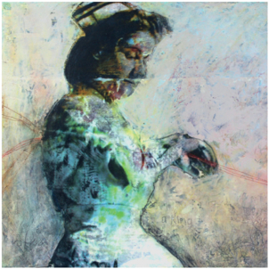 Viele Werke der Künstlerin entfalten sich in farbig-nebligen Bildräumen, in denen sich Figuren zu bewegen scheinen, stets auf der Suche nach etwas. Ein Hauch von Melancholie durchzieht diese Szenerien – genährt vielleicht durch die Wahl der Protagonistinnen, die häufig alten Schwarz-Weiß-Fotografien entspringen.