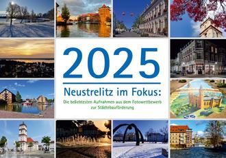 Ab sofort ist der Fotokalender „Neustrelitz im Fokus“ in der Touristinformation der Stadt Neustrelitz erhältlich. Die Gewinnerinnen und Gewinner des Fotowettbewerbs zur Städtebauförderung 2024 erhalten ebenfalls jeweils ein Exemplar des Kalenders.