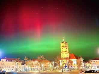 Polarlichter über dem Marktplatz der Residenzstadt Neustrelitz