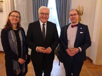 Als Zeichen der Anerkennung des Ehrenamtes waren Kristina Ropenus und Dr. Thomas Fiß bei der zentralen deutschen Veranstaltung zum Jahrestag des russischen Überfalls auf die Ukraine im Berliner Schloss Bellevue. Sie gehörten zu den Gästen, die als Vertreter aller Verfassungsorgane und als engagierte Bürgerinnen und Bürger, Bürgermeister, Helferinnen und Helfer von Bundespräsident Frank-Walter Steinmeier und dem ukrainischen Botschafter in Deutschland, Oleksii Makeiev, ins Bundespräsidialamt eingeladen waren.