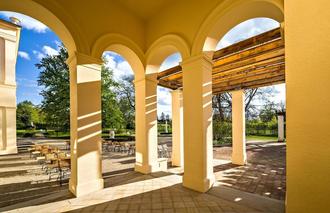 Der 1972 angebaute Küchentrakt wurde komplett abgebrochen. Dort entstand wieder eine Pergola. Sie war 1979 zurück gebaut worden. Jetzt wurde sie jetzt im Sinne der Gestaltung der Anlage um 1842/43 als moderne Variante mit Pfeilern aus Stahlbeton neu errichtet. In der Orangerie finden künftig wieder öffentliche Veranstaltungen statt. Zum Café und Restaurant gehört eine Gartenterrasse.