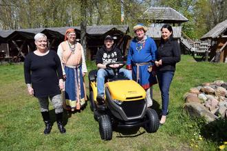 Glück muss man haben! Der Förderverein des Slawendorfes Neustrelitz hatte es auf jeden Fall: Er erhielt im Mai einen nagelneuen Rasentraktor, der mit Hilfe der Sparkasse Mecklenburg-Strelitz gekauft werden konnte. Den Traktor ins Rollen brachten allerdings die vielen fleißigen PS-Lotterie-Sparer der Sparkasse. Mit 25 Cent je Los fördert die Sparkasse gemeinnützige Projekte in der Region. Und das Slawendorf gehörte dazu. Dafür hatte sich der Vorsitzende des Fördervereins Klaus Ebel maßgeblich stark gemacht. Der Kauf des Rasentraktors war nötig geworden, weil der Vorgänger aus Altersschwäche seinen Dienst quittiert hatte. Bei 1,4 Hektar Fläche musste schnellstens ein Ersatz gefunden werden, der nun den Rasen des Anwesens alle 14 Tage in Schach hält. Mit 30.000 Besuchern rechnet das Team des Slawendorfes in diesem Jahr. Geöffnet ist zunächst vor allem an den Wochenenden, zur Saison im Juli und August dann täglich von 10 bis 17 Uhr. Bei Einheimischen und Touristen ist das Areal sehr beliebt. Hier kann man seiner Kreativität freien Lauf lassen beim Körbe flechten, Töpfern, Schmieden, Weben, Kerzen gießen, Schnitzen oder Specksteine schleifen. Viele Höhepunkte und Feste stehen in diesem Sommer ebenfalls auf dem Programm
