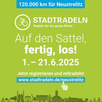 Die Residenzstadt Neustrelitz beteiligt sich auch in diesem Jahr wieder an der bundesweiten Aktion STADTRADELN - und ruft alle Bürgerinnen und Bürger, Vereine, Schulen, Unternehmen und Institutionen dazu auf, kräftig in die Pedale zu treten. Gemeinsam wollen wir zeigen, dass nachhaltige Mobilität Spaß macht und ein aktiver Beitrag zum Klimaschutz ist.