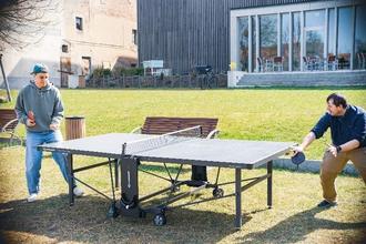 Im Garten des Kulturquartiers steht eine neue Tischtennisplatte.