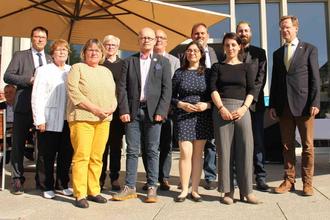 Bürgermeister Andreas Grund (li.) und Stadtpräsident Ernst August von der Wense (re.) dankten vielen Freiwilligen aus der Ukraine-Hilfe für ihr Engagement. Anwesend waren an diesem Nachmittag (2. - 9.von links): Ingrid Sievers, Silvia Koch, Waltraud Bauer, Klaus-Dieter Missling, Ulli Beesk, Adeleide Frassetti-Barner, Stella Schüssler und Thomas Kowarik.