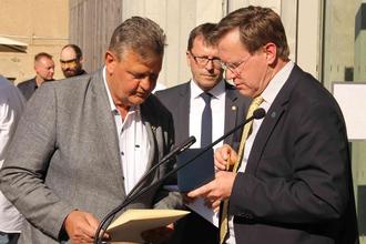 Die Rathausmedaille erhielt ebenfalls Hauke Runge, Unternehmer und langjähriger Präsident der TSG. Stadtpräsident Ernst August von der Wense würdigte ihn als besondere Führungspersönlichkeit. Hauke Runge habe maßgeblich zur Entwicklung des Vereins und der sportlichen Infrastruktur beigetragen, zum Beispiel durch seinen Einsatz für den Kunstrasenplatz und den Ausbau des Parkstadions, das heute über ein modernes Funktionsgebäude, eine Flutlichtanlage, Tribüne mit Spielertunnel und Gegengerade verfügt. Der TSG-Präsident hat sich im Verein nicht nur persönlich engagiert, sondern auch Verantwortung für Beschäftigte und die Sportfreunde übernommen und sich darüber hinaus für andere Vereine eingesetzt, heißt es in der Laudatio weiter. Mit seinem Unternehmen, das sich über 30 Jahre bis nach Berlin erfolgreich entwickelt hat, ist der Standort Neustrelitz von Anfang an verknüpft und immer bekannter worden, so von der Wense. Die Firma engagiert sich für neue Technologien und ist Aussteller im Landeszentrum für erneuerbare Energien. — (SE)