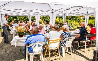 Der Bürgermeister lud zur Seniorenkaffeetafel auf dem Hof des Café Freiraum.
