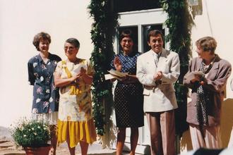 Eröffnung 1993 (v. l.): Dr. Gabriele Kriese ( damalige Ministerialdirigentin im Sozialministerium MV), Hannelore Raemisch (Vorstandsvorsitzende Familienzentrum Neustrelitz e.V.), Hannelore Rönsch, (1993 Bundesfamilienministerin), Dr. Klaus Gollert (1993 Minister für Arbeit, Gesundheit und Sozialordnung M-V), Sybille Groß (langjährige Leiterin des Familienzentrums)