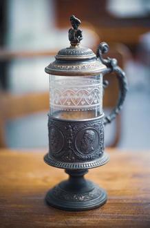 In den Sommermonaten holen wir einen Deckelhumpen, ein Bajonett und ein Feldtelefon aus unseren Depots hervor. Sie finden die Schätze des Monats in einer Vitrine neben der Treppe zur Bibliothek - dort erfahren Sie mehr zur Geschichte der Stücke.