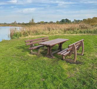 Diese Sitzgruppe haben wir am See in der Waldstraße neu aufstellen lassen. Das Material ist witterungsbeständig und nimmt auch keinen Schaden, wenn der Wasserspiegel des Sees ansteigen sollte. Die Sitzbänke sind auch für unseren Spielplatz am Gemeindehaus vorgesehen.
