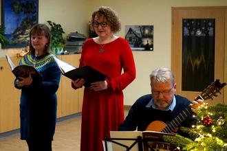 Für Abwechslung sorgte das unterhaltsame Programm des Trios vom Theater Vorpommern. Vera Meiß (Sopran), Katja Böhme (Alt) und Gitarrist Hans Löbnitz sangen und spielten die passenden Lieder zum Advent. Mit ihren humorvollen Texten rund um das Thema Weihnachten brachten sie unsere Gäste immer wieder zum Lachen.