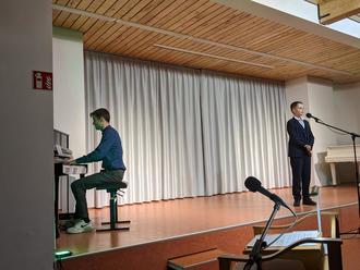 Für die kulturelle Umrahmung sorgten Ben Müller (Schüler der 8. Klasse und Philipp Prüter (ehemaliger Schüler). Vielen Dank für ihre Bereitschaft und die Darbietungen, über die alle Gäste sehr erfreut waren.