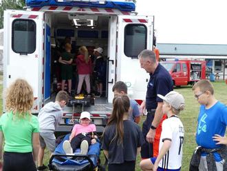 Die Schüler der 2. Klassen hatten Glück, dass die Rettungskräfte aus Richtenberg gerade rechtzeitig von ihrem Einsatz zurück kamen und sie so den Einsatzwagen in Beschlag nehmen konnten. Was da alles drauf war und was so ein Rettungssanitäter alles können muss, staunten unsere Kinder nicht schlecht.