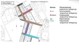 In der Sitzung der Stadtvertretung Parchim am 03.12.2025 beschlossen die Stadtvertreterinnen und Stadtvertreter, die in den Übersichtsplänen markierten Straßen in der Regimentsvorstadt mit den aufgelisteten Namen zu benennen.