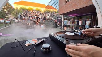 4 DJs und hunderte Besucher brachten die Treppen am Stadthaus zum Schwingen.