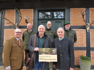 Vor-Ort-Audit auf dem Forsthof in Kiekindemark: im Vordergrund v.l.n.r. Hubertus Ritter von Kempski, Frank Schmidt, Dr. Karl Gruss, im Hintergrund v.l.n.r. Danilo Klaus, Nils Engelhard, Frank Möller.