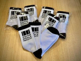 Wir haben unser Sortiment um tolle weiß-schwarze Socken mit dem Kulturmühlen-Logo erweitert. Diese sind Öko-Tex 100 zertifiziert und bestehen zu 85 % aus Baumwolle. Es gibt die Socken in zwei Größen - 36/40 und 41/45, jeweils für 7,00 € pro Paar.