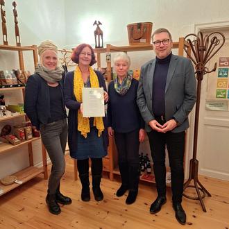 Die Präsentation der „Fairtrade-Urkunde im Eine-Welt-Laden, in der Parchimer Mühlenstraße.