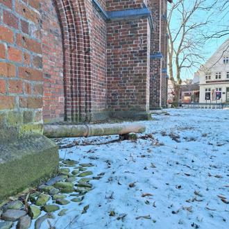 Im Mittelpunkt der Maßnahme steht die seit geraumer Zeit unbefriedigende Situation der Regenwasserableitung der riesigen Dachflächen der backsteingotischen Kirche. Die gegenwärtige Oberflächenbefestigung des Areals besteht größtenteils aus Katzenkopf- und Polygonalpflaster. Teilflächen sind unbefestigt. Mit der Umgestaltung dieses Umfelds entstehen neue Naturstein-, Pflasterklinker- und Grünflächen. Das Niederschlagswasser aus diesen Flächen fließt gegenwärtig unkontrolliert ab, bzw. wird in Straßenabläufen gefasst und der Misch- und Schmutzwasserkanalisation zugeführt. Bislang kommt es gerade bei Starkregenereignissen regelmäßig auch zu Überflutungen der angrenzenden Straßen.