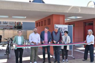 Fahrradstation Mönchhof: Das symbolische Band wird durchschnitten.