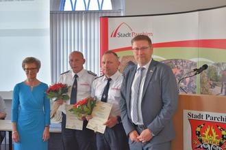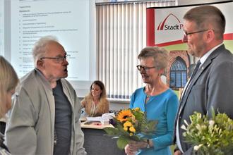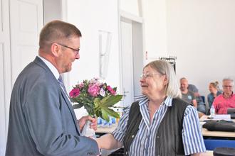 Bürgermeister Dirk Flörke verabschiedet das langjährige Mitgliede der Parchimer Stadtvertretung Elke Skiba.