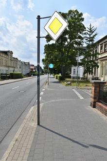 Hier soll durch die Maßnahmen die Sicherheit für den Rad- und Fußgängerverkehr erhöht werden: Straßeneinmündung an der Putlitzer Straße.