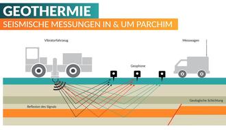 Mit Hilfe seismischer Messungen können Daten über die genauere Beschaffenheit des Untergrundes gewonnen werden. Mit einem aus den erhaltenen Vermessungsdaten abgeleiteten Modell können anschließend die Endpunkte und der Verlauf der Tiefbohrungen für die Wärmegewinnung genau geplant werden.