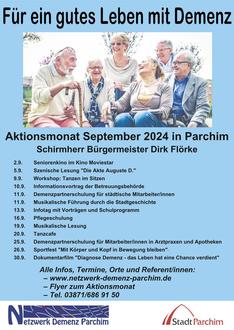 Das Netzwerk Demenz Parchim hat sich gemeinsam mit der Stadt Parchim zum Ziel gesetzt, durch Information und Angebote ein solches Lebensumfeld in Parchim zu schaffen. Dazu werden durch Informationsangebote und Öffentlichkeitsarbeit Ängste und Vorurteile gegenüber der Erkrankung abgebaut und Angebote zur kulturellen und gesellschaftlichen Teilhabe ermöglicht.