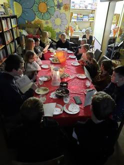 Im Dezember schafften wir es tatsächlich noch eine kleine Weihnachtsfeier zu veranstalten. Es war sehr lustig. Schön wäre es, wenn die traditionellen Volks- und Weihnachtslieder wieder mehr gelernt werden. Es gab auch Kekse und Bratapfel mit Vanillesoße. Leider kennt auch diese Leckerei kaum ein Kind.