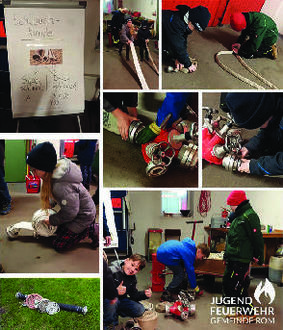 Die Kinder lernten die unterschiedlichen Schlaucharten von Saugschlauch A bis Druckschlauch D kennen sowie das richtige Aus- und wieder Einrollen.