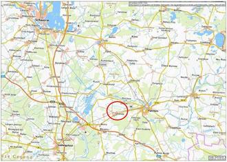 Das Plangebiet mit einer Größe von ca. 52,6 ha umfasst die Flurstücke 49 (teilweise), 53/1, 53/2, 57, 58, 59, 65, 70 und 73 der Flur 10 in der Gemarkung Spornitz nördlich der Ortslage Spornitz, an der nördlichen Gemarkungsgrenze Schneesgraben, östlich der Straße „Am Matzlower Weg“.