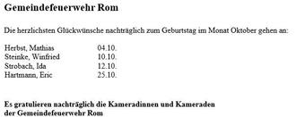 Es gratulieren die Kameradinnen und Kameraden der Gemeindefeuerwehr Rom